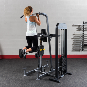 With its weight-assisted kneepad mechanism, the Fusion Chin-Dip provides the same benefits of chin and dip exercises to everyone, regardless of their current fitness level or weight. Plus, its 210 lb. weight stack enables you to counterbalance your own bodyweight.By doing pull-ups chin-ups and dips, you can effectively and efficiently build muscles in your arms, shoulders and back. Add vertical knees raises, and you’ll soon see an increase in definition of your lower abdominal muscles. Best of all, the benefits of these exercises can be enjoyed by fitness enthusiasts of all skill and strength levels.