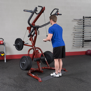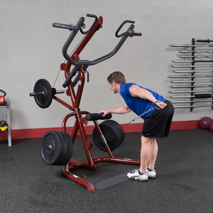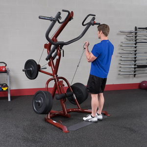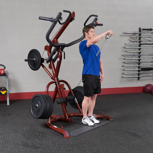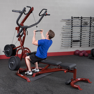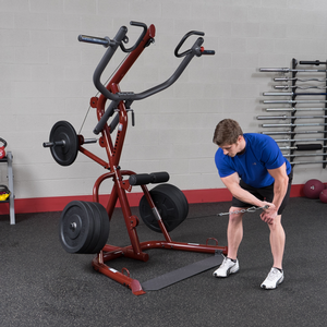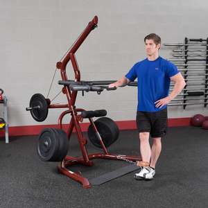 Perform shrugs, squats, dead lifts, biceps curls and everything in-between more easily and effective. With a revolutionary space-saving design the GLGS100P4 fits comfortably into most home and commercial settings. With an all-new, high-tech/high-gloss anodized red finish, this gym not only stands out for its performance but also its looks.