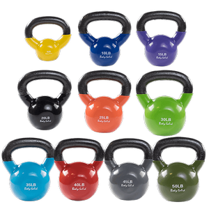 Body-Solid Vinyl Dipped Kettlebells are available in 5, 8, 10, 12, 15, 20, 25, 30, 35, 40, 45, and 50 lb. increments. Purchase a complete set for variety and a steady progression to the intensity of your workouts.