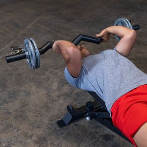 The Body-Solid Tools OB48F Fat Curl Bar helps users build bigger and stronger biceps and triceps through movements like biceps curls, skull crushers, preacher curls, triceps extensions, spider curls, overhead presses and upright rows.