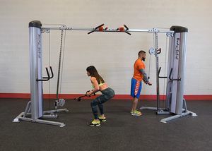 This cable crossover machine can be used to perform a variety of total body workouts, such as pec fly, bench, incline, crossover, upright row, deltoid raise, overhead press, front lat pulldown and close-grip pulldown, bent-over row, seated row, ab crunch, oblique Rowing, Squats, tricep extensions, outer and inner thigh abduction, calf presses, reverse fly, glute kickbacks, and more.