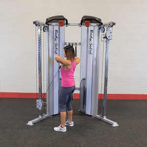 Unlock a near-unlimited amount of workout possibilities with the Body-Solid S2FT Series II Functional Training Center. The S2FT’s dual independent weight stack system provides dedicated resistance with true isolateral movements from cable crossovers and shoulder presses to pull-ups, leg kickbacks and everything in-between. The pulleys adjust independently offering 34 different starting positions.