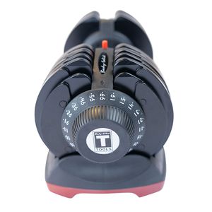 - These adjustable dumbbells replace an entire rack, offering the functionality of 15 individual sets (900 lbs.) while minimizing space requirements.
